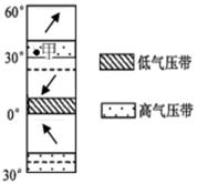 2、单选题 读图“局部气压带、风带分布示意图”,回答题。