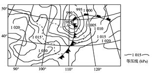 3、综合题 (2013·安徽高考)下图为2001年4月6日17时某区域地面天气图,虚线范围内为图示天气系统引发的某种气象灾害实时分布区。此前图示区域大部分地区表土解冻,地表干燥。阅读图文资料,完成下列各题。