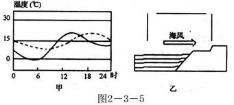 1、单选题 图2-3-5中甲、乙两图分别表示某滨海地区海陆表面气温和海陆上空气流的变化特征,由图甲可知乙出现时间约为?