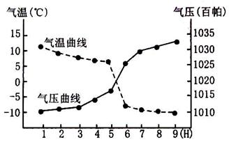 (1)从图上可以看出,此时该地气压是逐渐上升;而气温是呈下降趋势。