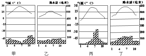(2)根据甲、乙、丙、丁四种气候类型的分布规律,在图13中与其相对应的位置分别是(填写代表字母)??、?、?、??