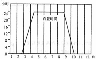 5、单选题  下图是某群岛白昼长短月变化示意图,读图回答1--2题。