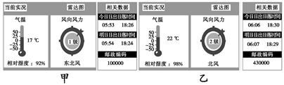 1、单选题 小明和小亮于同一天出生在我国的甲、乙两个城市,下图为他们16岁生日那天所在城市的天气预报图。据此回答小题。