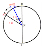 【小题2】若A、B所夹劣弧为夜弧,则平分AB弧的经线地方时为0:00,如下图所示。又因为A点两侧日期不同,为7日和8日,则A点所在经线为180度经线,根据自西向东过180度经线减一天,确定7日、8日范围,由图可知150oE地方时为0:00,则此时北京时间即120oE的地方时为7日22时。
