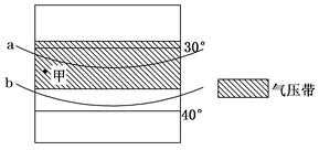 【小题1】据图纬度30°、40°向南递增说明是南半球,所以B错误;等温线b的纬度比a高,气温比a低,说以A错误;甲位于大陆西岸,所以图示气压带为副热带高气压带,根据其位置应为夏季,南半球为一月。 故选C。