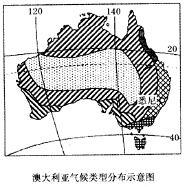 5、综合题 读澳大利亚气候类型分布示意图。回答问题。