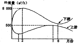 3、单选题 读“北半球某河流上、下游径流量季节变化曲线图”,完成下列各题。