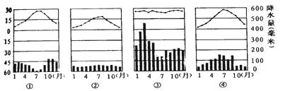 C.①温带海洋气候 ②热带季风气候 ③热带雨林气候 ④地中海气候