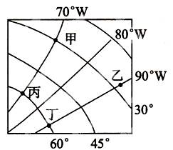【小题1】甲在丁的什么方向,判断正确的是( )