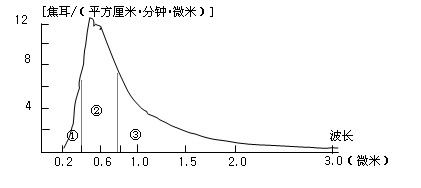 3、单选题 将一张白纸置于阳光下,观察投到纸上的阳光,结合太阳各种辐射的波长范围图,回答1~2题。