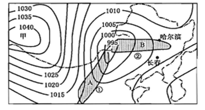 (1)图中甲、乙两处,________为高气压中心,按天气系统的气流状况划分属于____,图中乙处中心垂直方向气流运动状况为____(填“上升”或“下沉”)。
