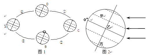2、综合题 读图1 “地球公转示意图”、图2“地球光照图”及相关材料,回答下列问题。(10分)