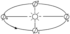 2、当地球公转运行到图中C位置后的半年内,赤道上正午太阳高度的变化是