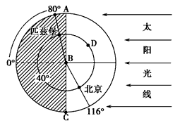 (4)一架飞机从北京起飞,计划全程沿经线以每小时1100km的速度匀速飞行,由北京经过B点,最后在匹兹堡降落。请回答: