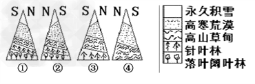 1、单选题 读四幅山地垂直自然带分布图(不考虑其他非地带性因素),完成1-3 题