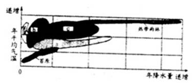 4、单选题 植被类型深受气温、降水影响,读主要植被分布示意图,回答下列各题。