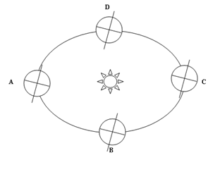 小题7:在A→B、B→C、C→D、D→A四时段中,太阳直射点位于北半球的时段: