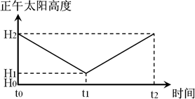 1、单选题  下图为北半球某地某时段正午太阳高度变化图,0≤H0<H1<H2<90°,根据图中信息判读,正确的是
