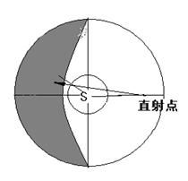 昆仑站极昼(图示小圈为80°25′S的纬线圈),计算出北京时间 4点30分举行升旗仪式时,其地方时应为1∶30,再作图,连接太阳直射点与该地立杆点(图中三条线的交点),反向延长线(图中箭头)就是当地影子的方向(在经纬网中定方向,纬线为东西方向,图中半径为经线,表示南北方向)可知影子方向为西北方向,太阳则为相反的方向,即为东南方向。