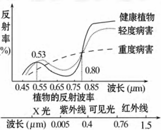 1、综合题 “利技兴农”是实现我国农业可持续发展的根本出路所在。图1一15为利用植物反射波谱特征判断植物的生长状况的图示,据图回答下列问题。