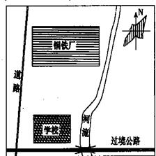 4、综合题 我国某中学研究性学习小组考察了该校附近的地理环境,并绘制了学校周边的简易地图。该小组考察时发现学校附近的工厂尚未对污染进行治理。读图完成下列各题。