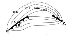 【小题3】下列四幅图中,正确表示甲天气系统的是: