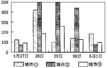 1、单选题 2005年4月28~30日,华北地区经历了一次沙尘天气,造成许多地方空气污染指数(API)增高,主要污染物是可吸入颗粒物。读图,回答1—2题。