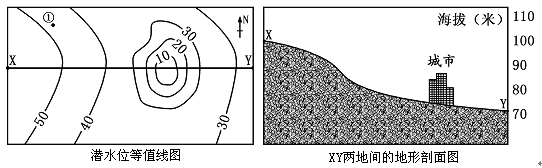 1.图中①地的地下径流方向是:2.在资源利用上,图中显示该地存在的问题是