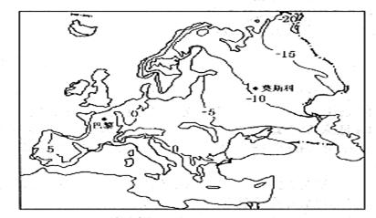 2、单选题 下图为“欧洲一月等温线图”,欧洲一月等温线总体走向及影响的主导因素是