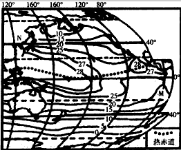 3、单选题 ? 每一条子午线上月平均最高气温所在地点的连线称为热赤道。读“某季节的太平洋表层水温等值线分布图”(如下图),回答1—2题。