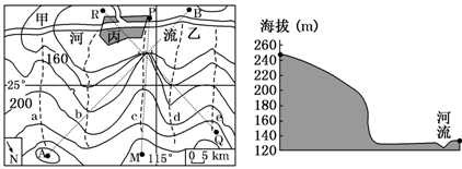 (1)地形剖面图是沿上图中剖面线AB、MP、RQ中的____________进行绘制的;a、b、d、e四线可能有河流发育的是______。(2分)