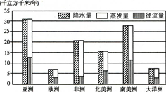 2、单选题 根据下图判断,水资源总量最多和最少的大洲分别是
