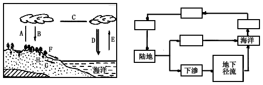 (3)选择左图中的字母填入右图中相应的方格内,以正确表示海陆间大循环过程。