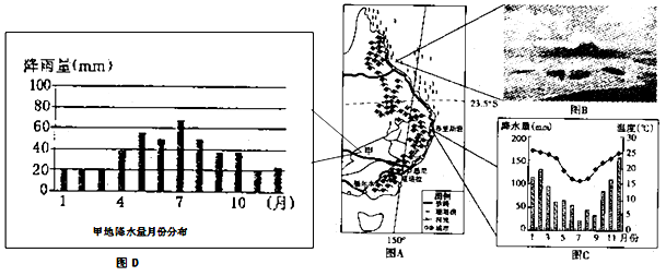(1)依据图A和图C判断布里斯班洪涝多发的季节,并从气候、地形、河流角度分析其洪涝灾害多发的原因。(8分)
