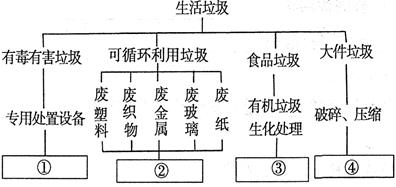 (3)上图表示的是上海市生活垃圾分类收集后处理系统示意图,在以下备选答案中选择正确选项,填入相应方框内。