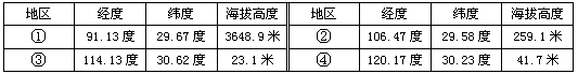 2、下列我国①~④地区中使用太阳能热水器效果最好的是