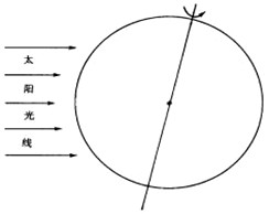 4、综合题  完成北半球冬至日太阳照射的示意图,并回答问题。