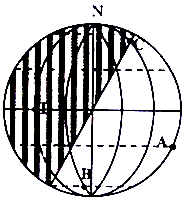 5、综合题  读下图,阴影部分表示黑夜,回答下列问题。