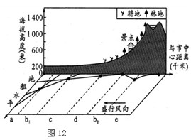 2、单选题  图12为某特大城市及其周边地区各类土地的付租能力与该地区地形剖面示意图。读图,完成第24、25题。