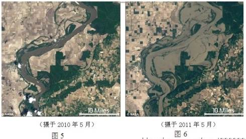 1、单选题  图5、图6是美国宇航局公布的密西西比河流域某地区的卫星照片。完成11~12题。