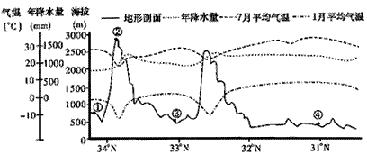 3、单选题 下图是“沿106.5°E经线的地形剖面及相关气候资料图”,据图回答1—2题。