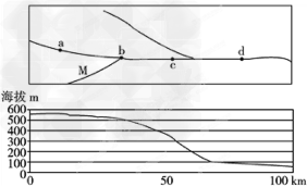 4、单选题 下图为M 河流域河流分布图及其干流河床对应的剖面图,读图回答1-3 题。?