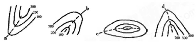 2、单选题 下图所示等高线中,表示集水线的是( )