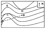 3、单选题 下图为某地等高线地形图,已知等高距为25米,AB为一空中索道。下面说法正确的是( )