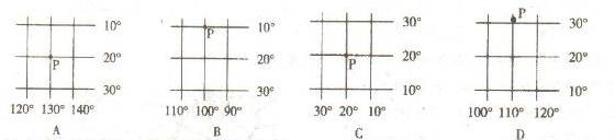小题1:图中的P点位置同时符合:①东半球、②北半球、③在我国境内三个条件的是(?)