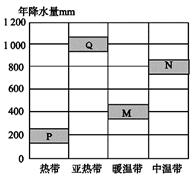 4、单选题 下图中P、Q、M、N为世界四个不同区域的年降水量示意图,回答以下问题。