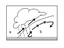 (3)A点受热多,气流膨胀上升,B点受热少,气流压缩下沉,高空气流由C到D,近地面气流由B到A,因此,热力环流方向为顺时针。