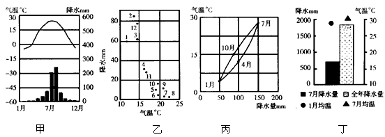 5、单选题  读下列四幅气候资料图,回答1—3题。
