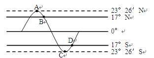 小题3:夏至日,一架飞机在仰光日出时(昼长约13小时)起飞前往凯恩斯,并于当日凯恩斯日落时安全降落,则飞机飞行时间约为