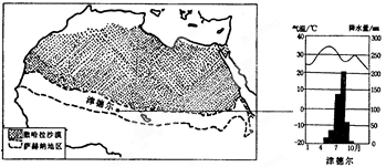 3、综合题 萨赫勒地区位于撒哈拉沙漠的南缘。请根据下图及资料,并联系已学知识回答。(12分)